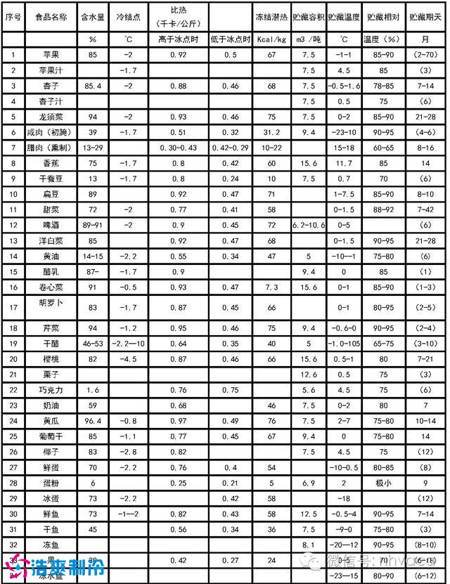 以下为食品冷藏保鲜温度参数表(仅供参考)